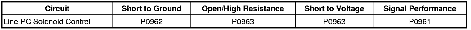 The TCM detects an open or a short to voltage on the line PC solenoid control circuit for 5 seconds.
