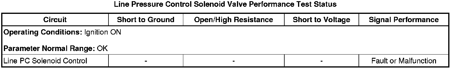 * Line Pressure Control Solenoid Valve Performance Test Status