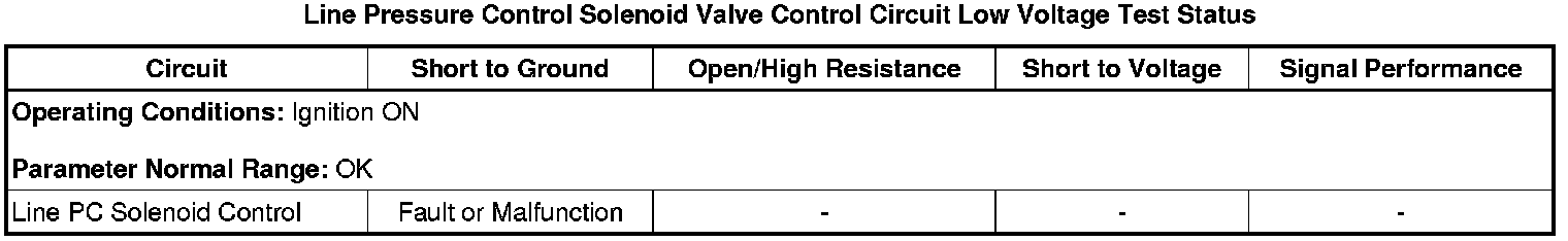 * Line Pressure Control Solenoid Valve Control Circuit Low Voltage Test Status