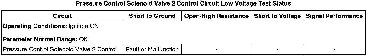 * Pressure Control Solenoid Valve 2 Control Circuit Low Voltage Test Status