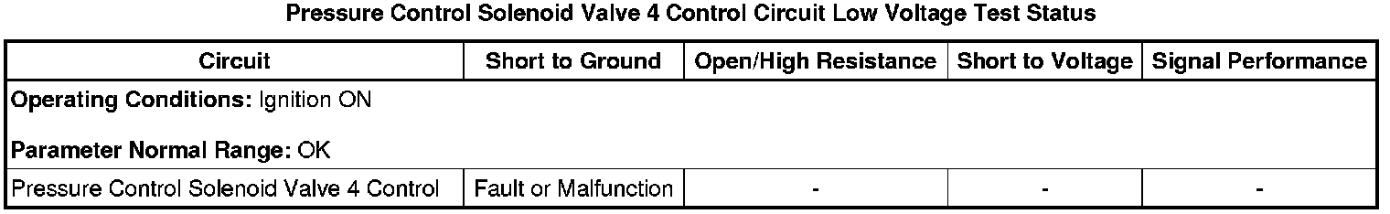 * Pressure Control Solenoid Valve 4 Control Circuit Low Voltage Test Status