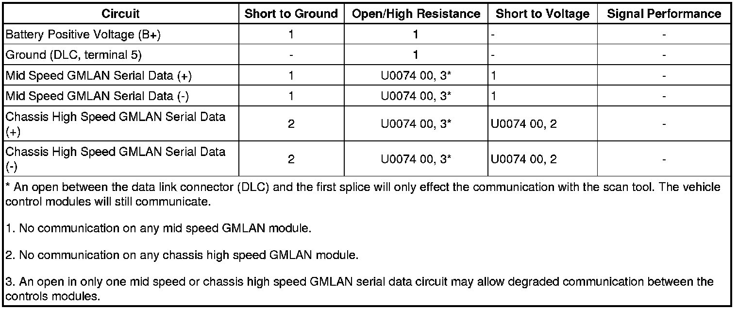 1. Attempt to communicate with all control modules on the mid speed or chassis high speed serial data circuit. Refer to Data Link References (Initial Inspection and Diagnostic Overview). Communications should not be available with two or more control modules on the mid speed or chassis high speed serial data circuit.