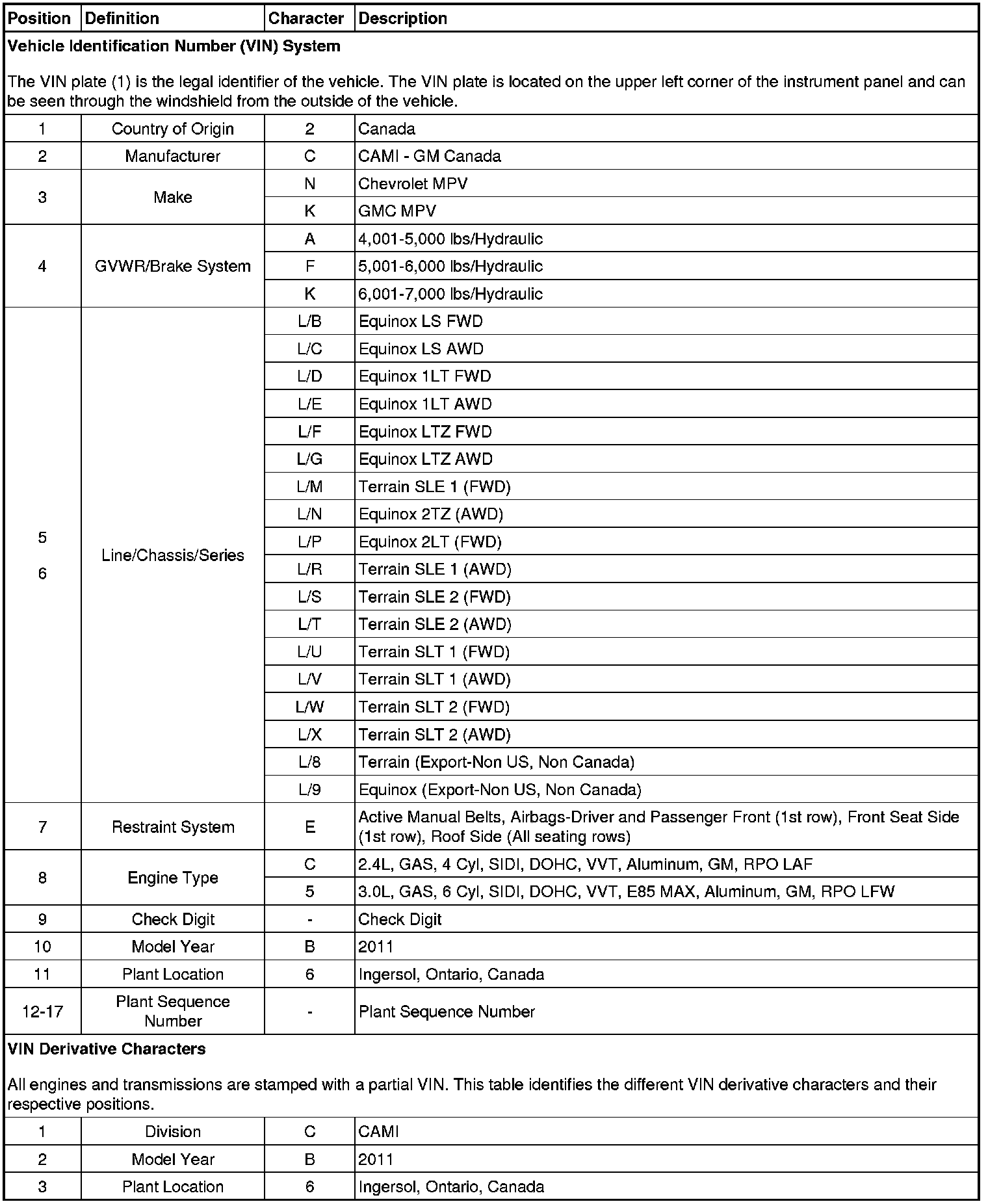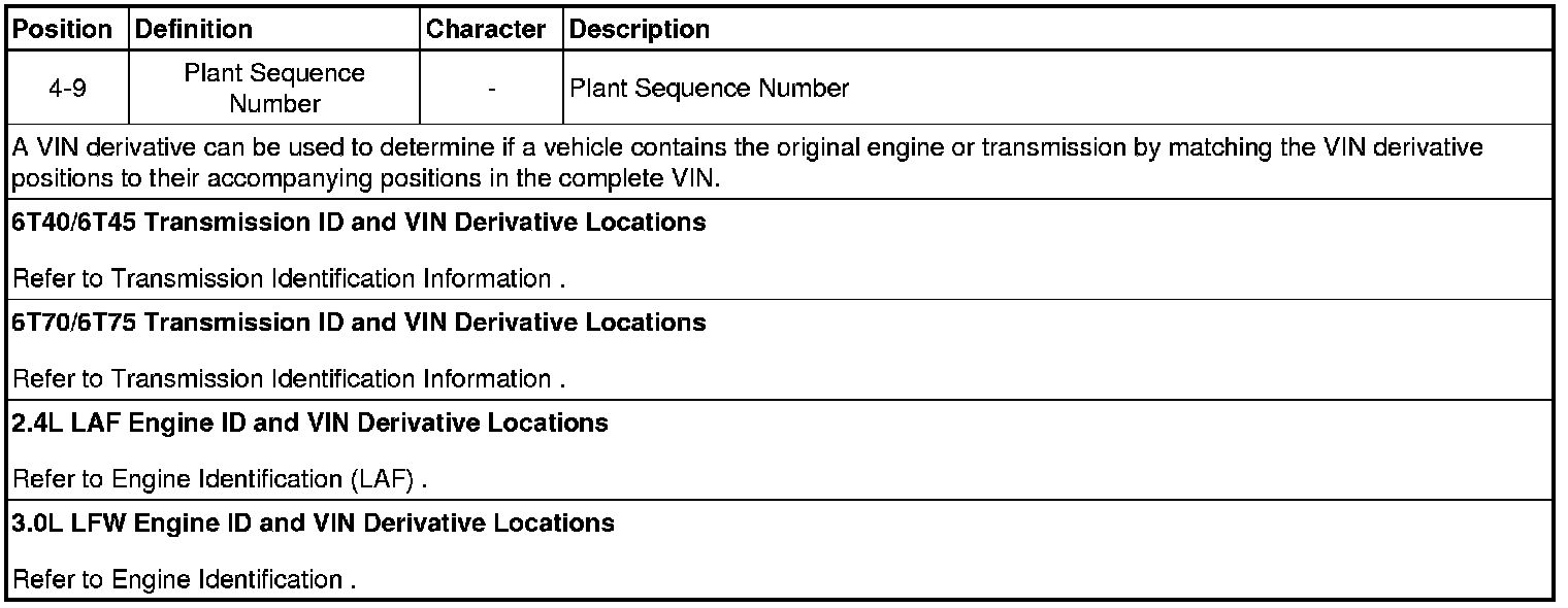 Vehicle, Engine and Transmission ID and VIN Location, Derivative and Usage