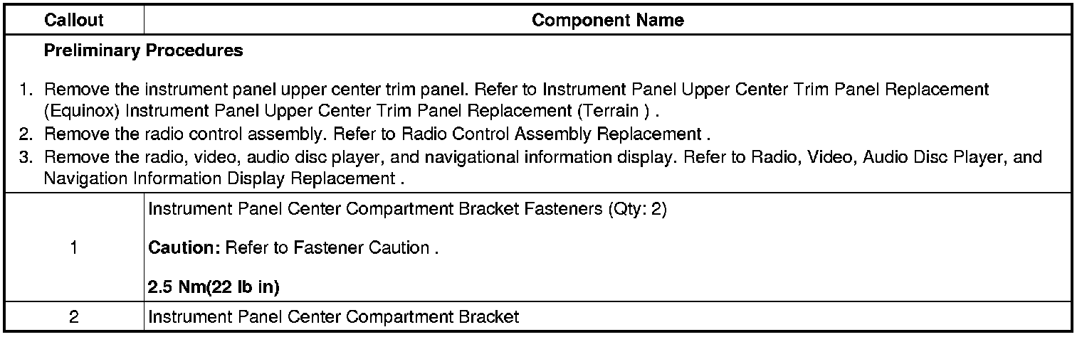 Instrument Panel Center Compartment Bracket Replacement (Equinox)