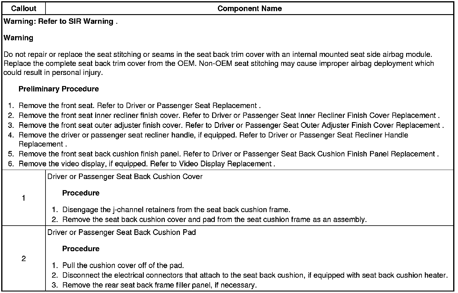 Driver or Passenger Seat Back Cushion Cover and Pad Replacement