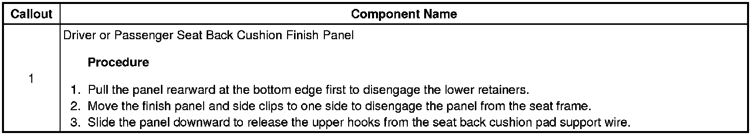 Driver or Passenger Seat Back Cushion Finish Panel Replacement