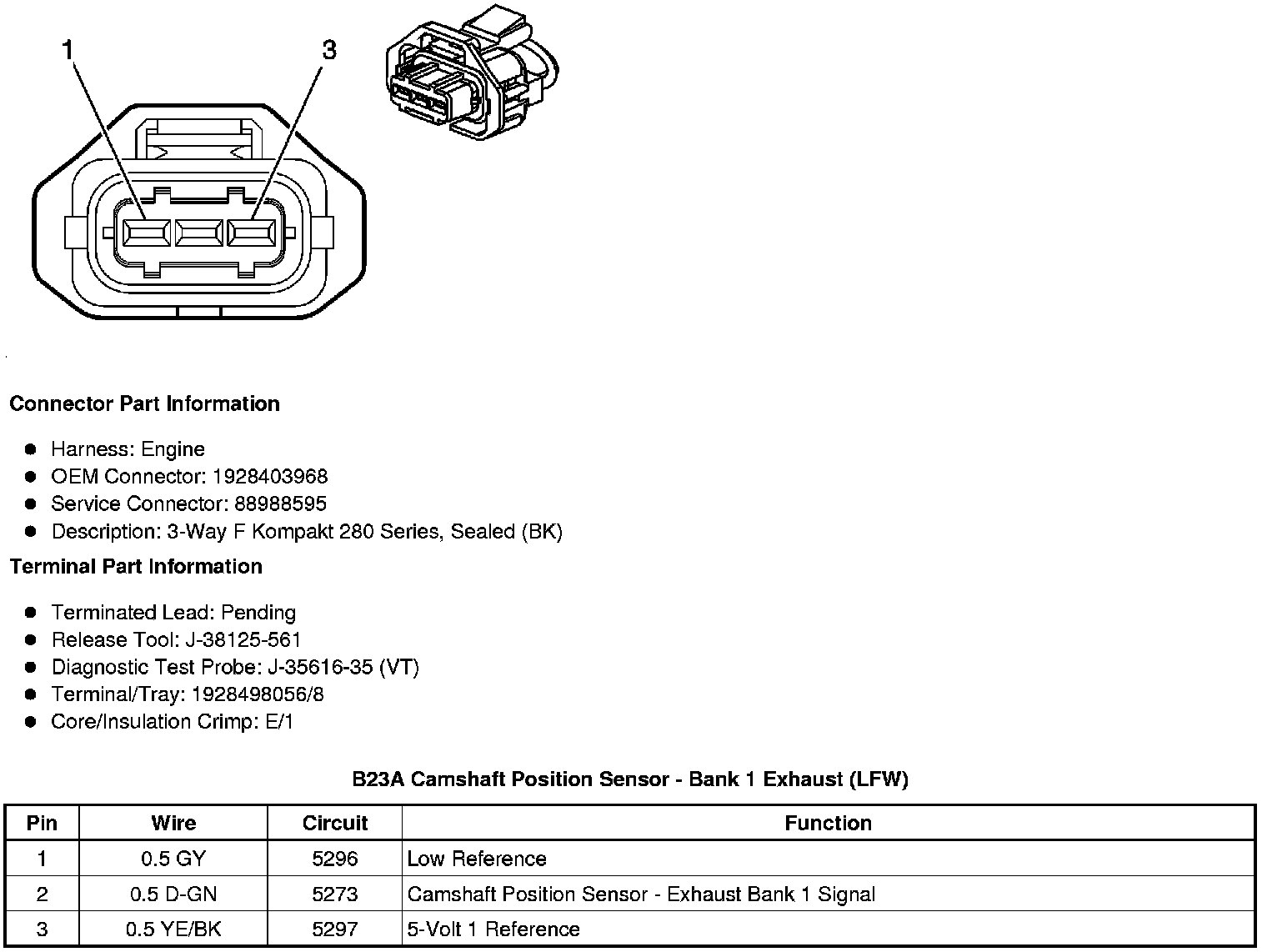 B23C Camshaft Position Sensor - Bank 2 Exhaust (LFW)