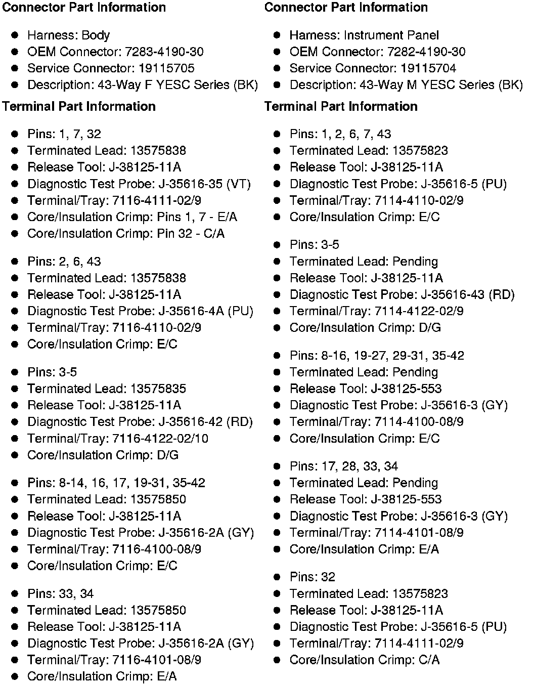 Connector End Views By Number
