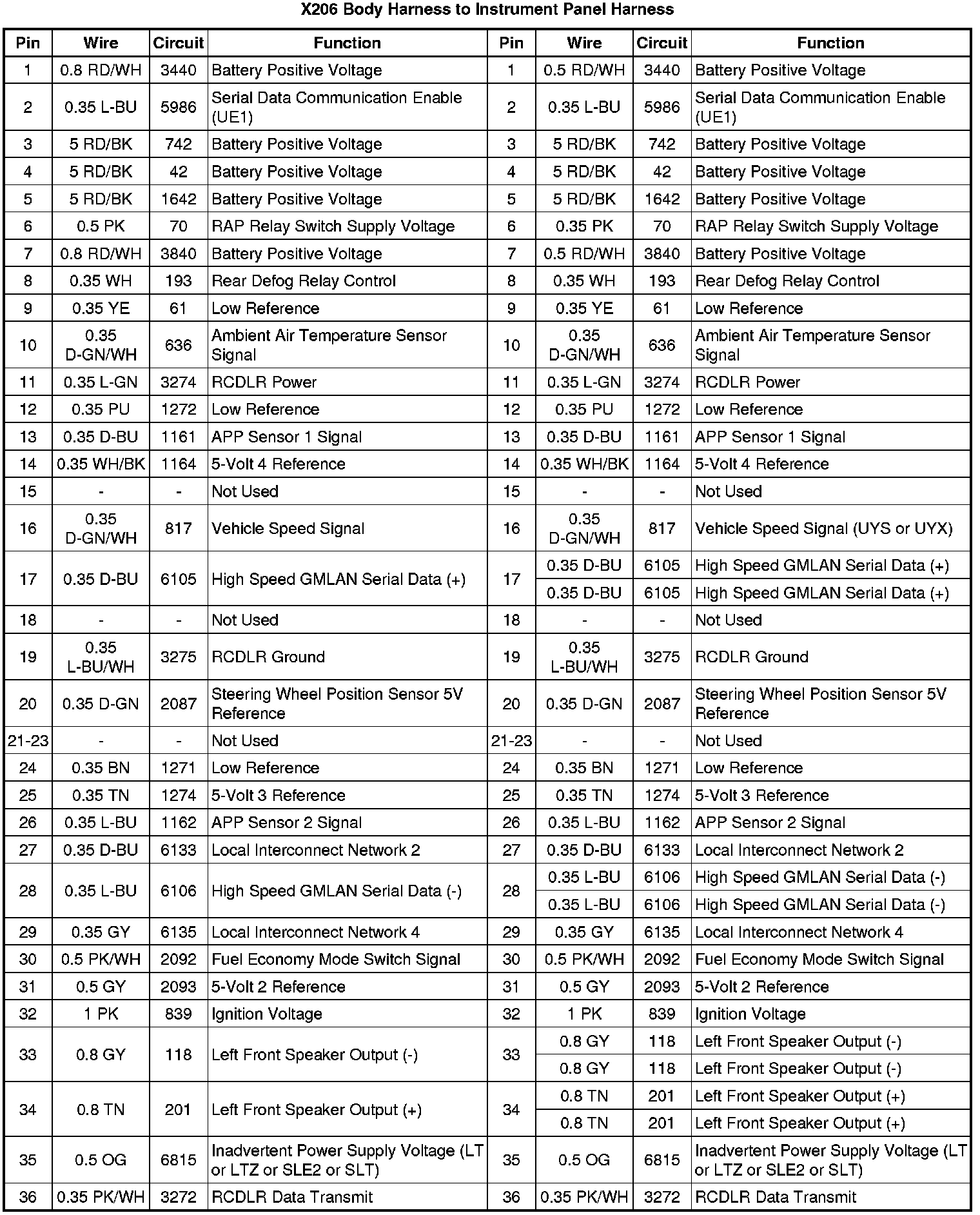 X206 Body Harness to Instrument Panel Harness