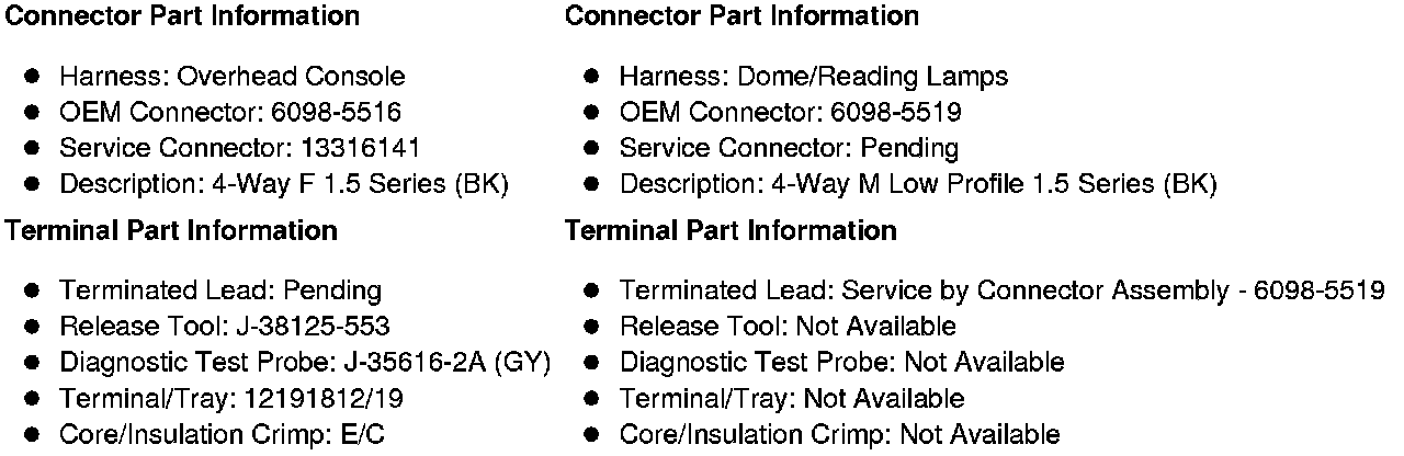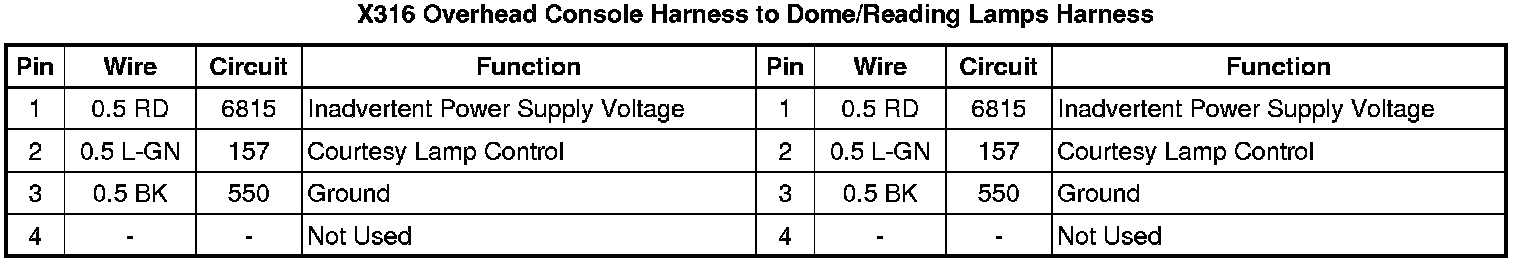X316 Overhead Console Harness to Dome/Reading Lamps Harness