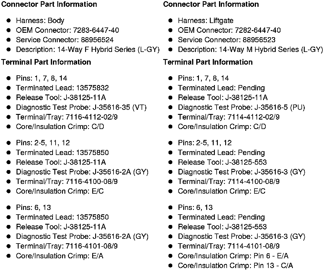 X901 Body Harness to Liftgate Harness