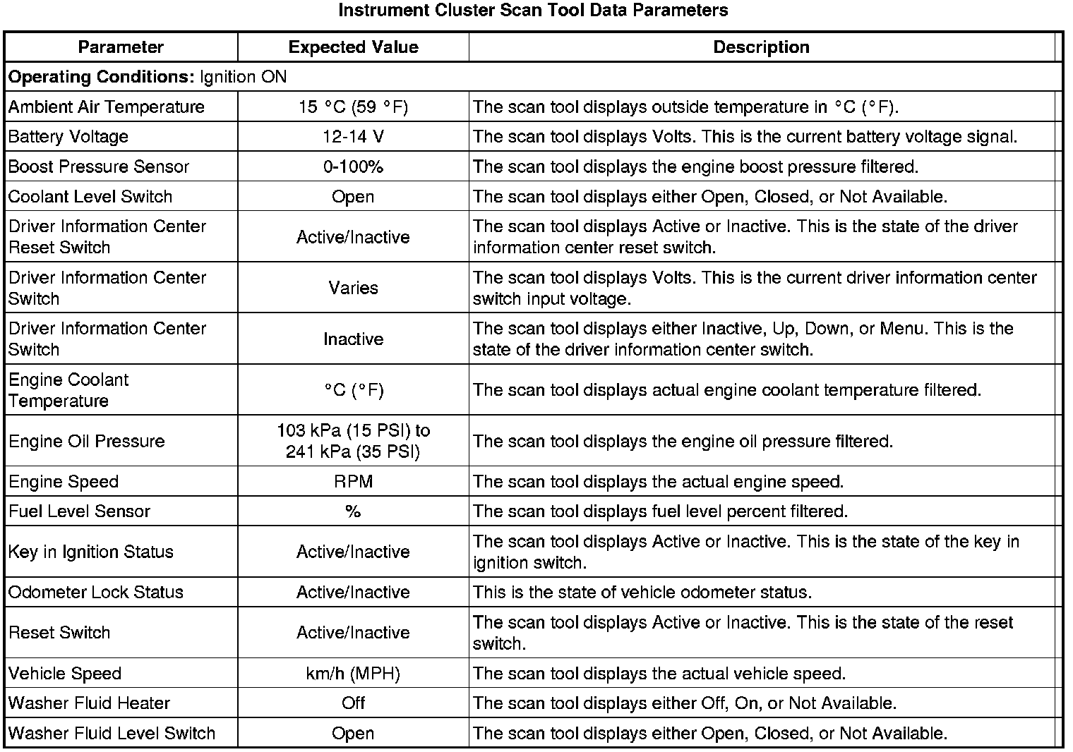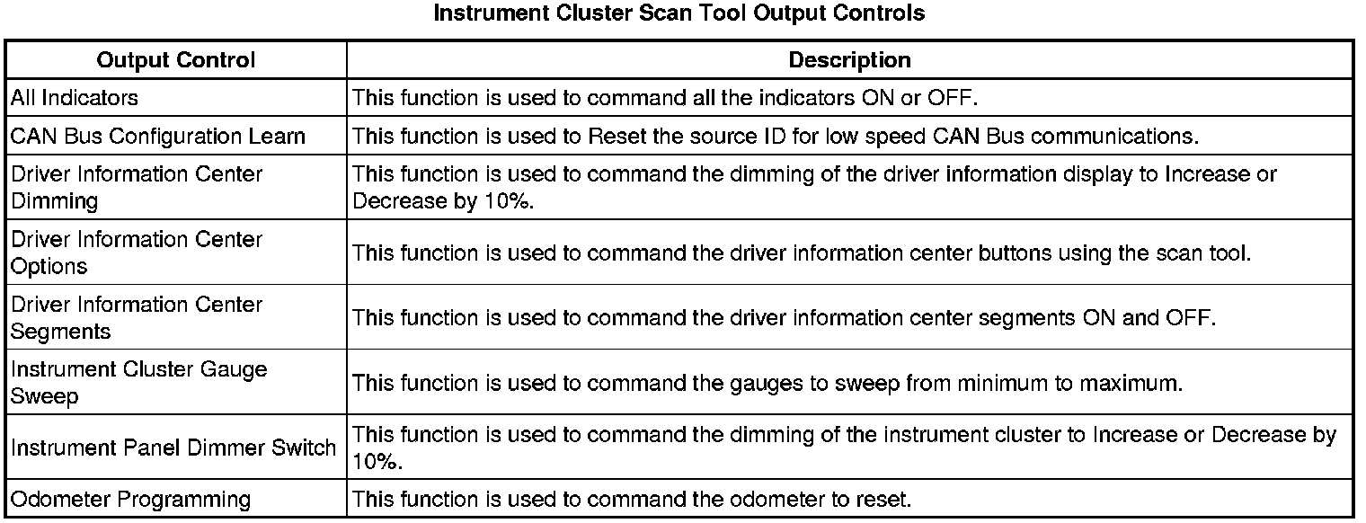 Instrument Cluster Scan Tool Information