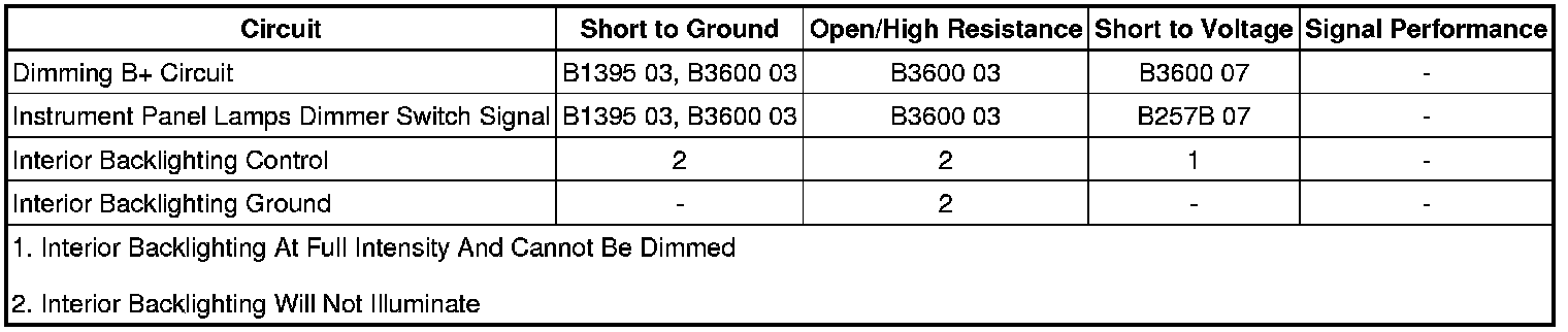 • If the LED backlighting components do not change between the commanded states, refer to Interior Backlighting Malfunction.