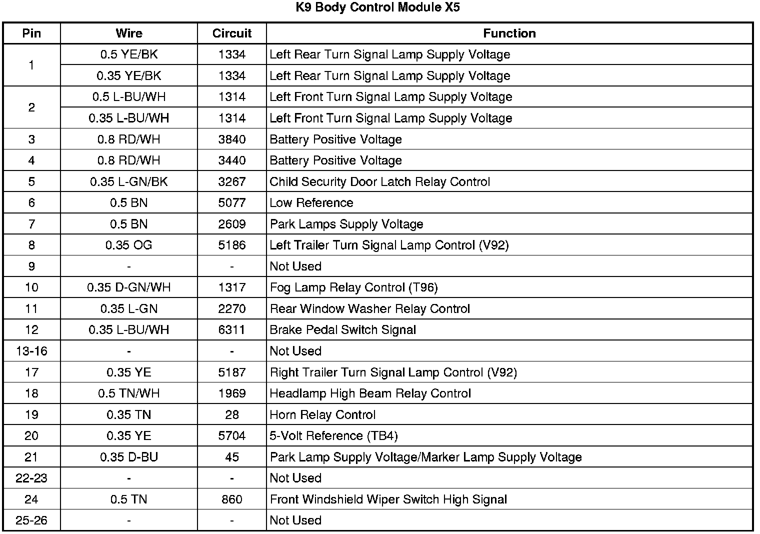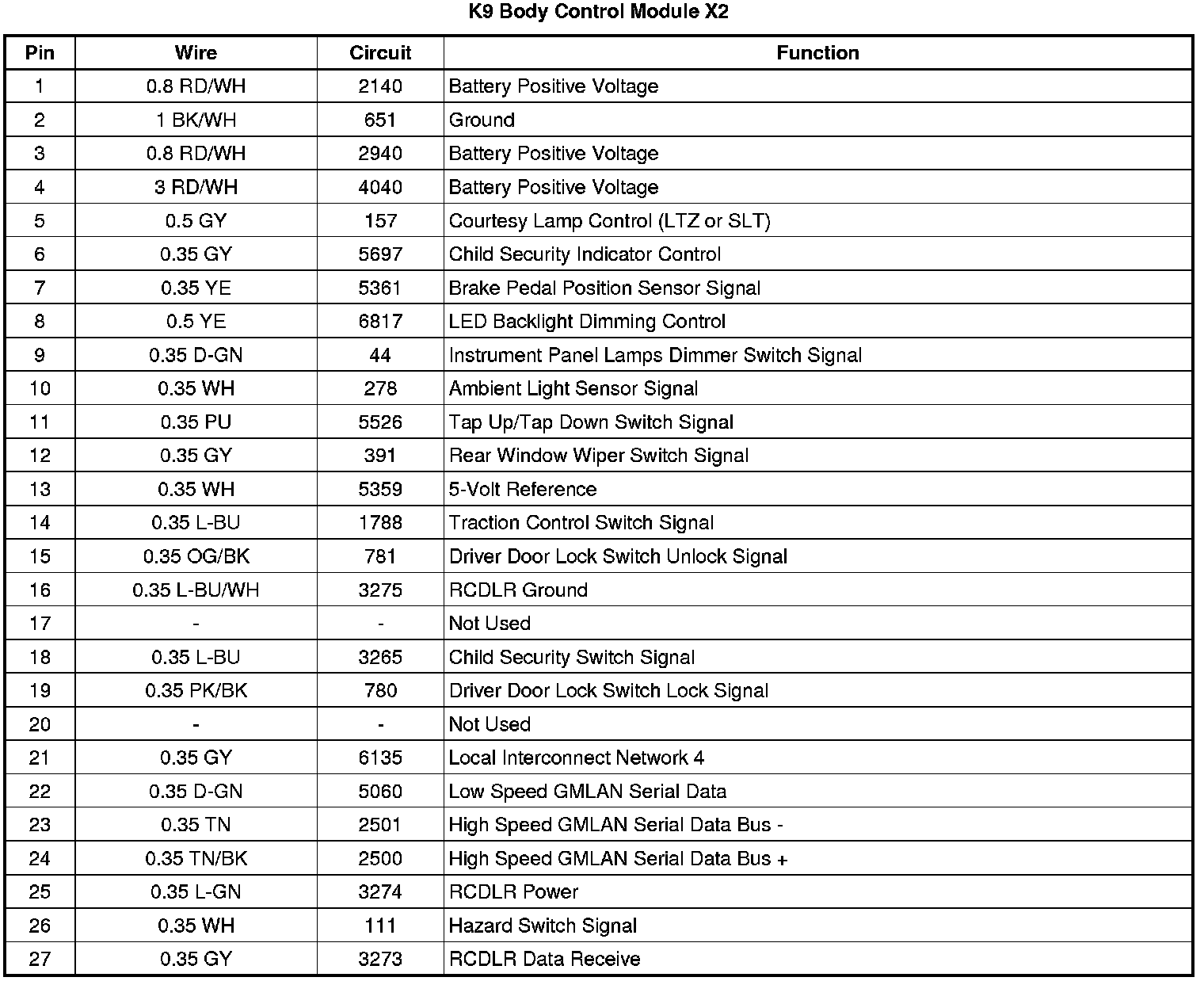 Body Control Module: Diagrams