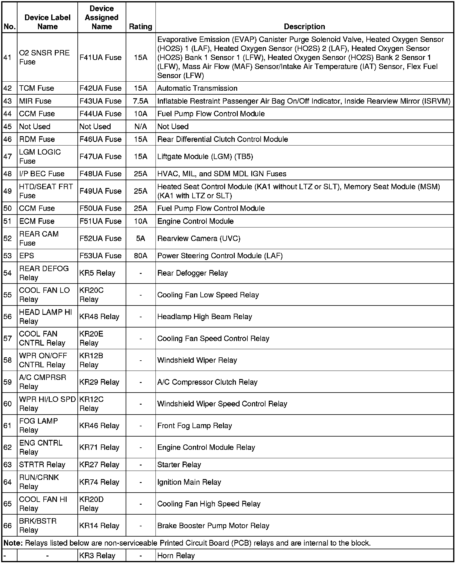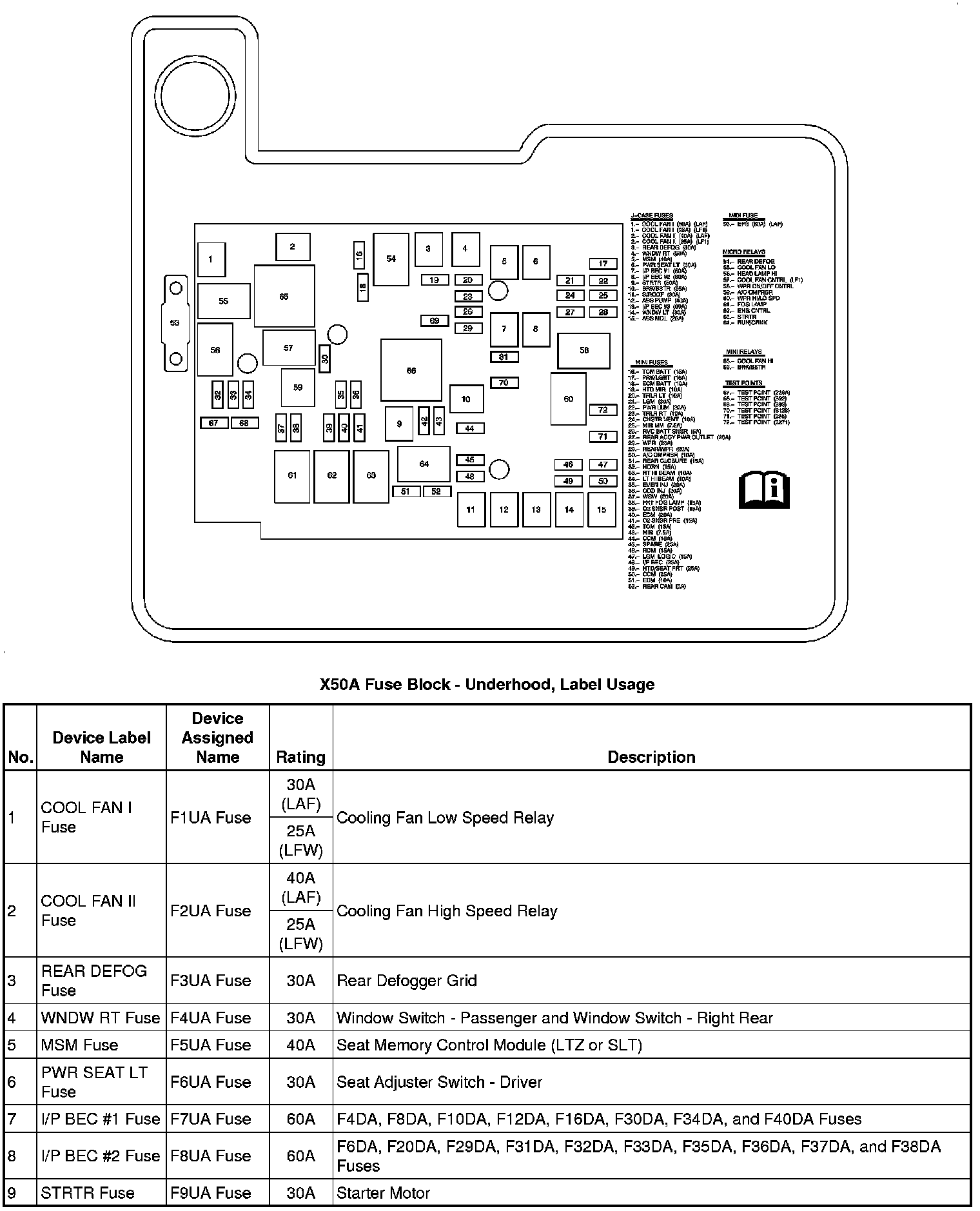 X50A Fuse Block - Underhood, Label