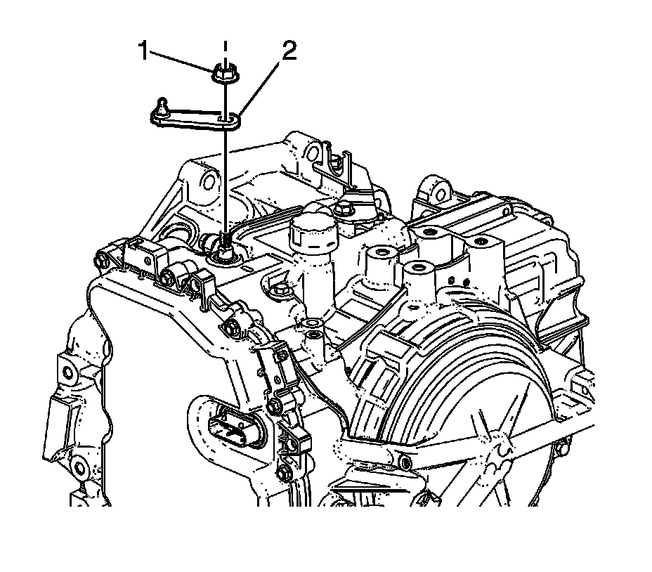 4. Remove the transmission range selector lever nut (1).