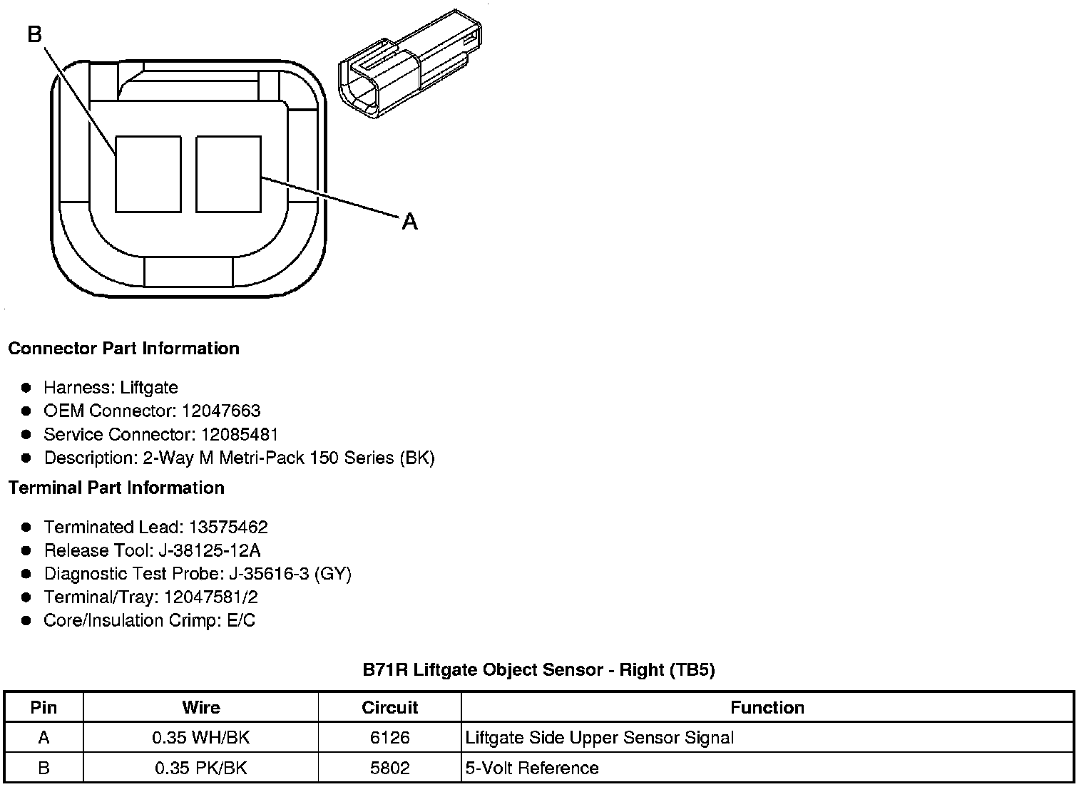 B71R Liftgate Object Sensor - Right (TB5)