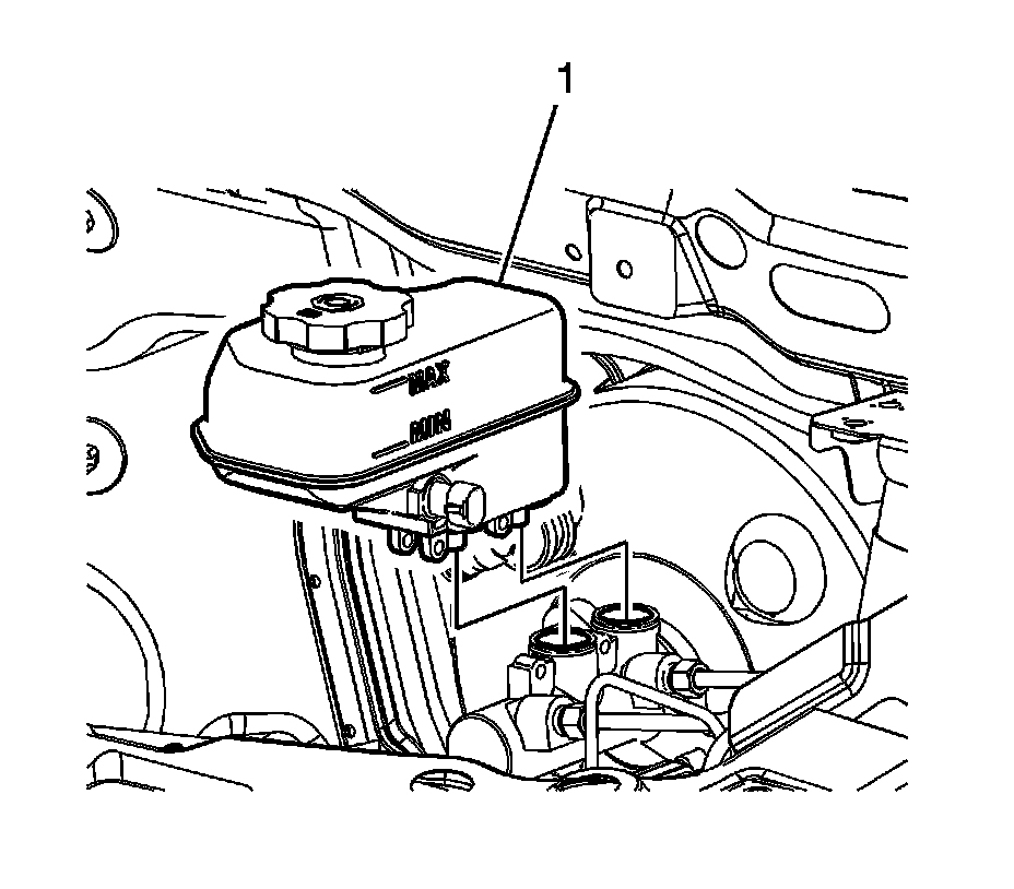 3. Disconnect the master cylinder fluid level sensor electrical connector (1).