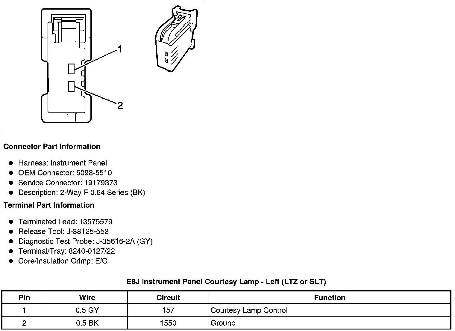 E8J Instrument Panel Courtesy Lamp - Left (LTZ or SLT)