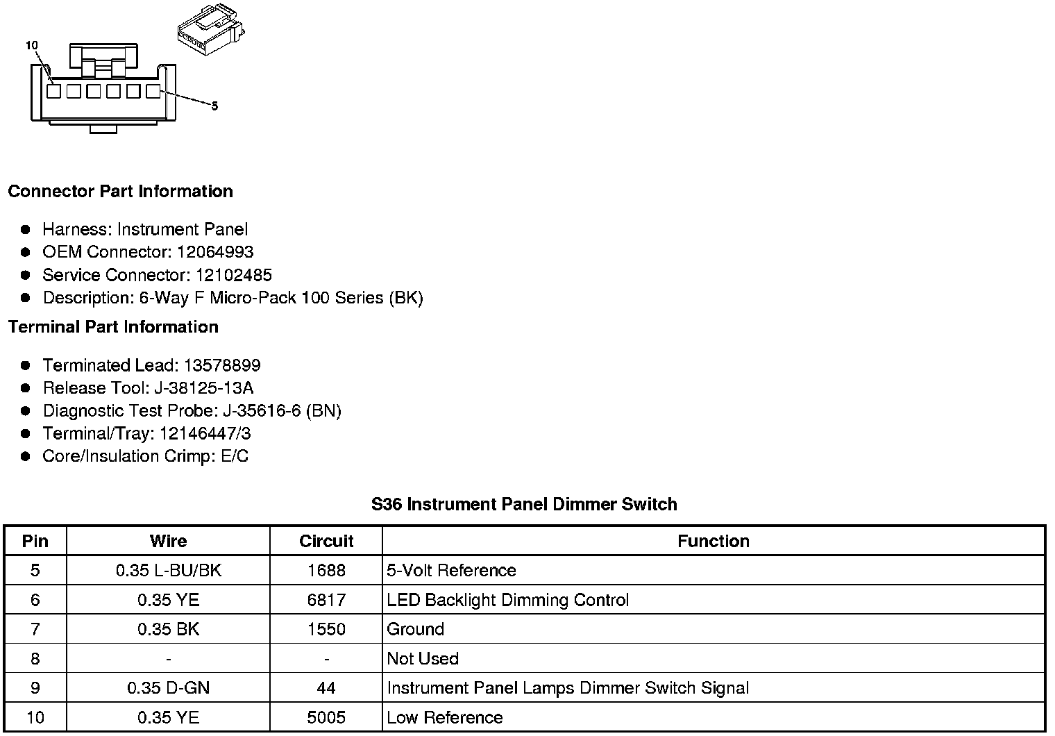 S36 Instrument Panel Dimmer Switch