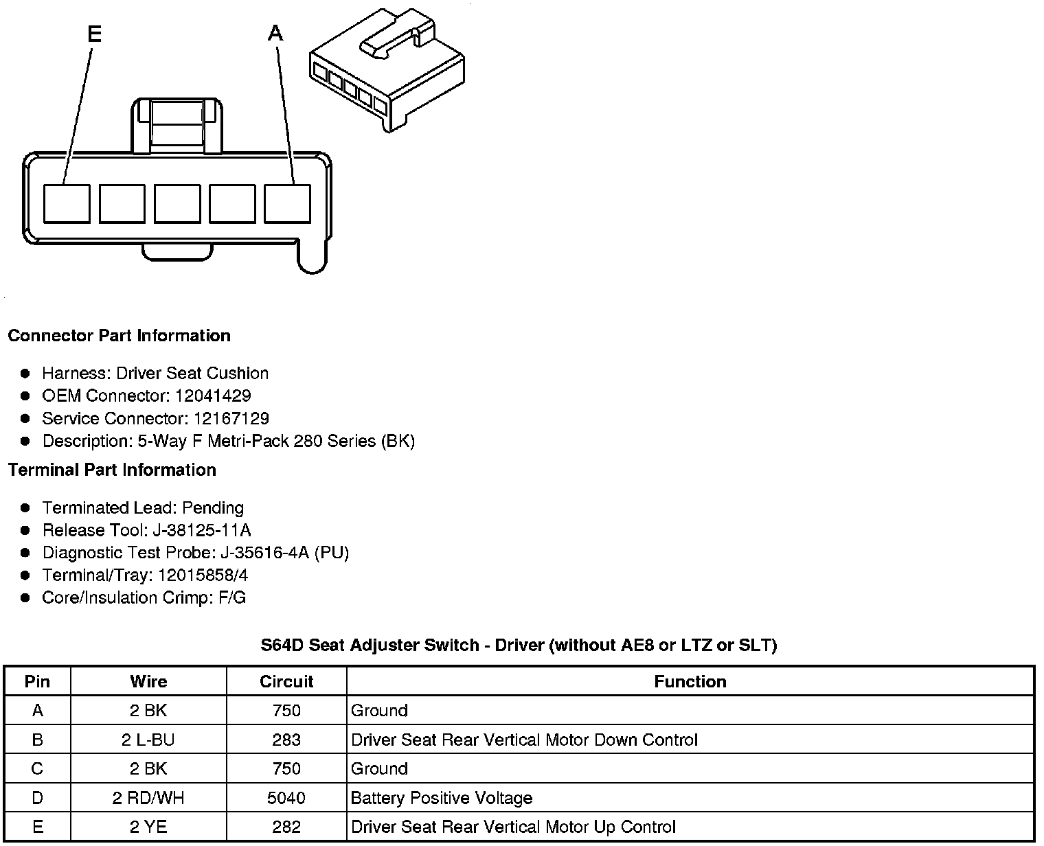S64D Seat Adjuster Switch - Driver (AE8 or LTZ or SLT)