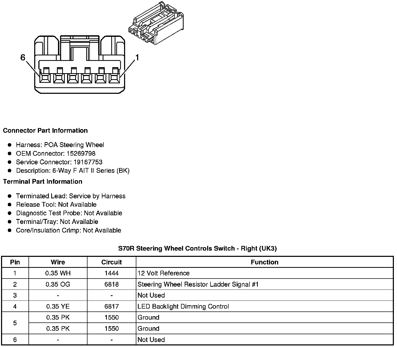 S70L Steering Wheel Controls Switch - Left