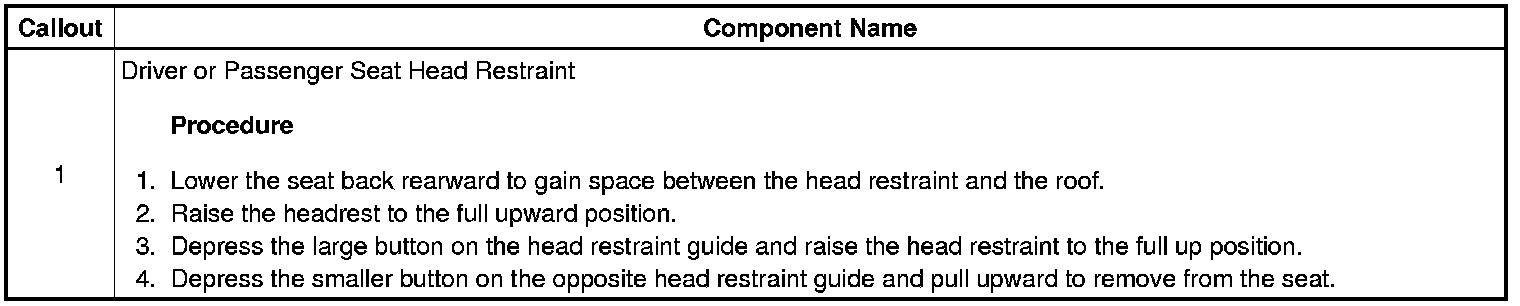 Driver or Passenger Seat Head Restraint Replacement
