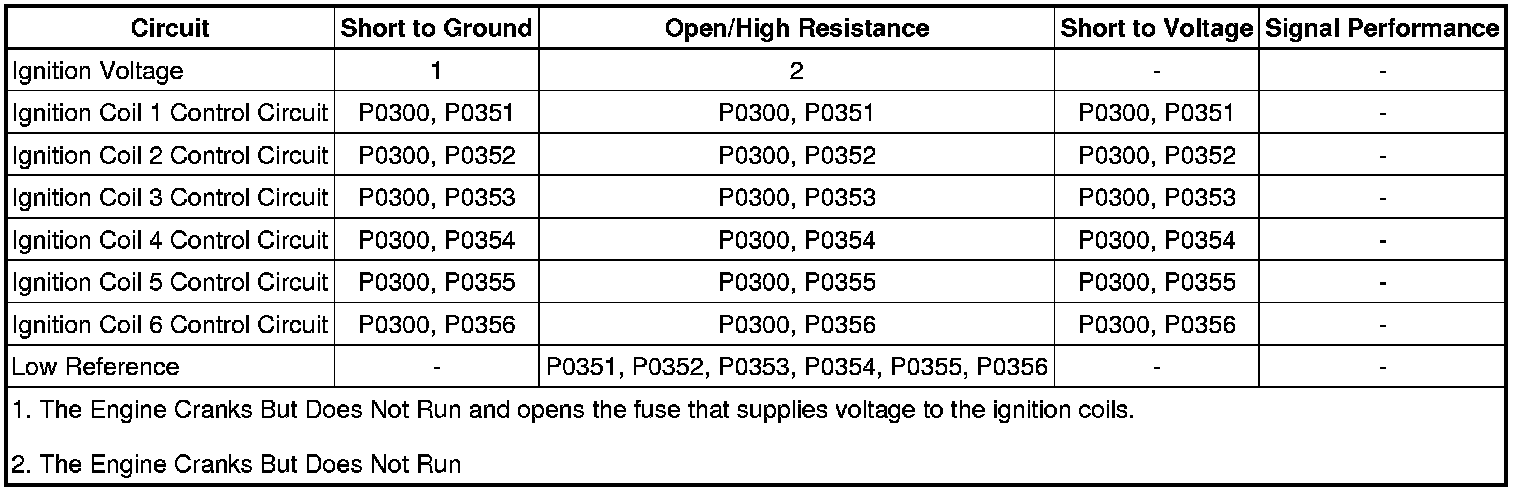 Note: An ignition control circuit fault condition will result in an engine misfire, and under certain driving conditions could possibly overheat the 3-way catalytic converter.