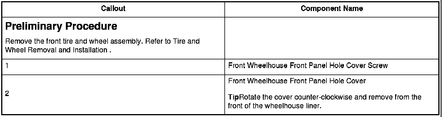 Rotate the cover counter-clockwise and remove from the front of the wheelhouse liner.