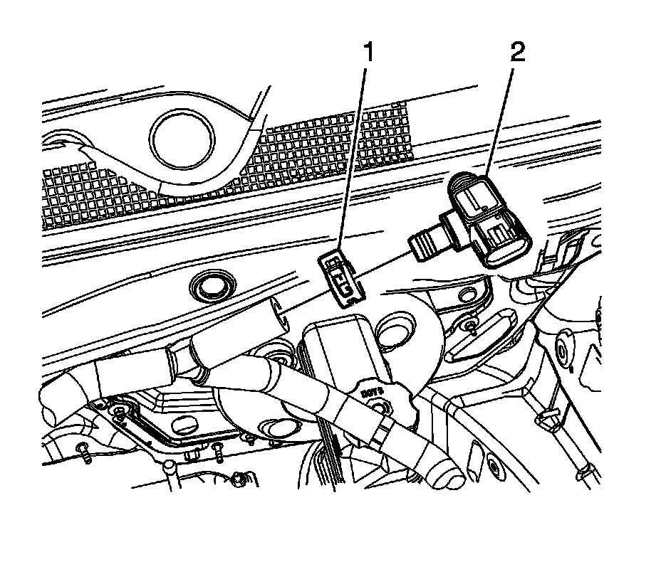 1. Release the tension on the spring clamp (1) and install the power brake booster vacuum hose to the power brake booster vacuum sensor (2).