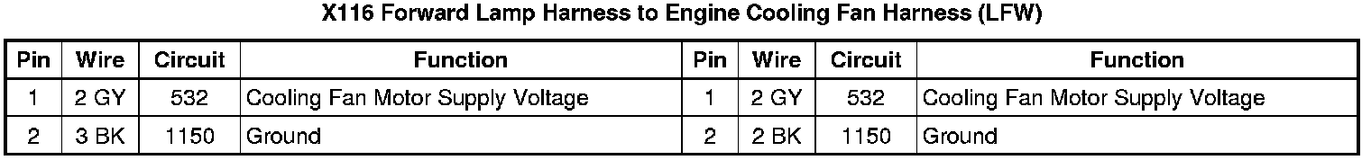X116 Forward Lamp Harness to Engine Cooling Fan Harness (LFW)