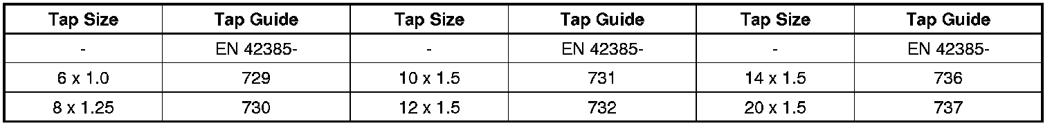 If the threaded hole being repaired has a base surface perpendicular to the hole centerline, tapping guides are available to aid in tapping the hole.