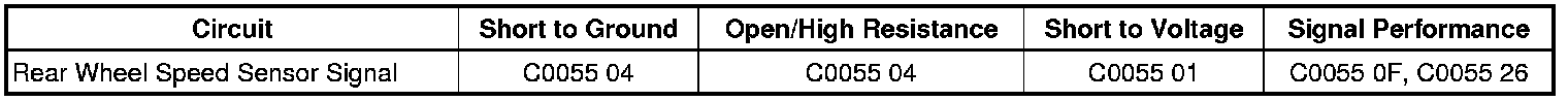 * The EBCM detects a short to voltage, short to ground or an open/high resistance on the rear wheel speed sensor signal circuit.