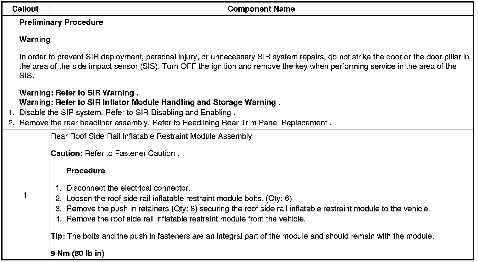 Inflatable Restraint Roof Side Rail Module Replacement - Rear