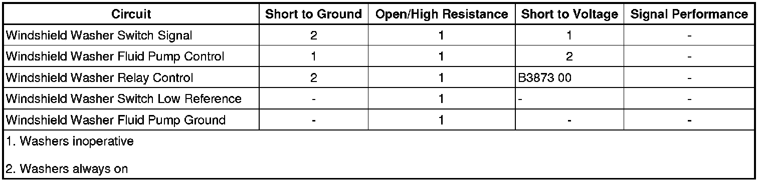 • If the test lamp does not turn ON and OFF while changing between the commanded states, refer to the Windshield Washer Pump Relay Control Circuit Test.