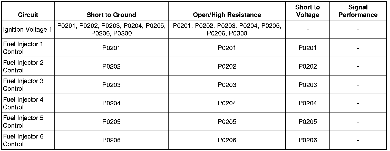 DTC P0201, P0202, P0203, P0204, P0205, or P0206