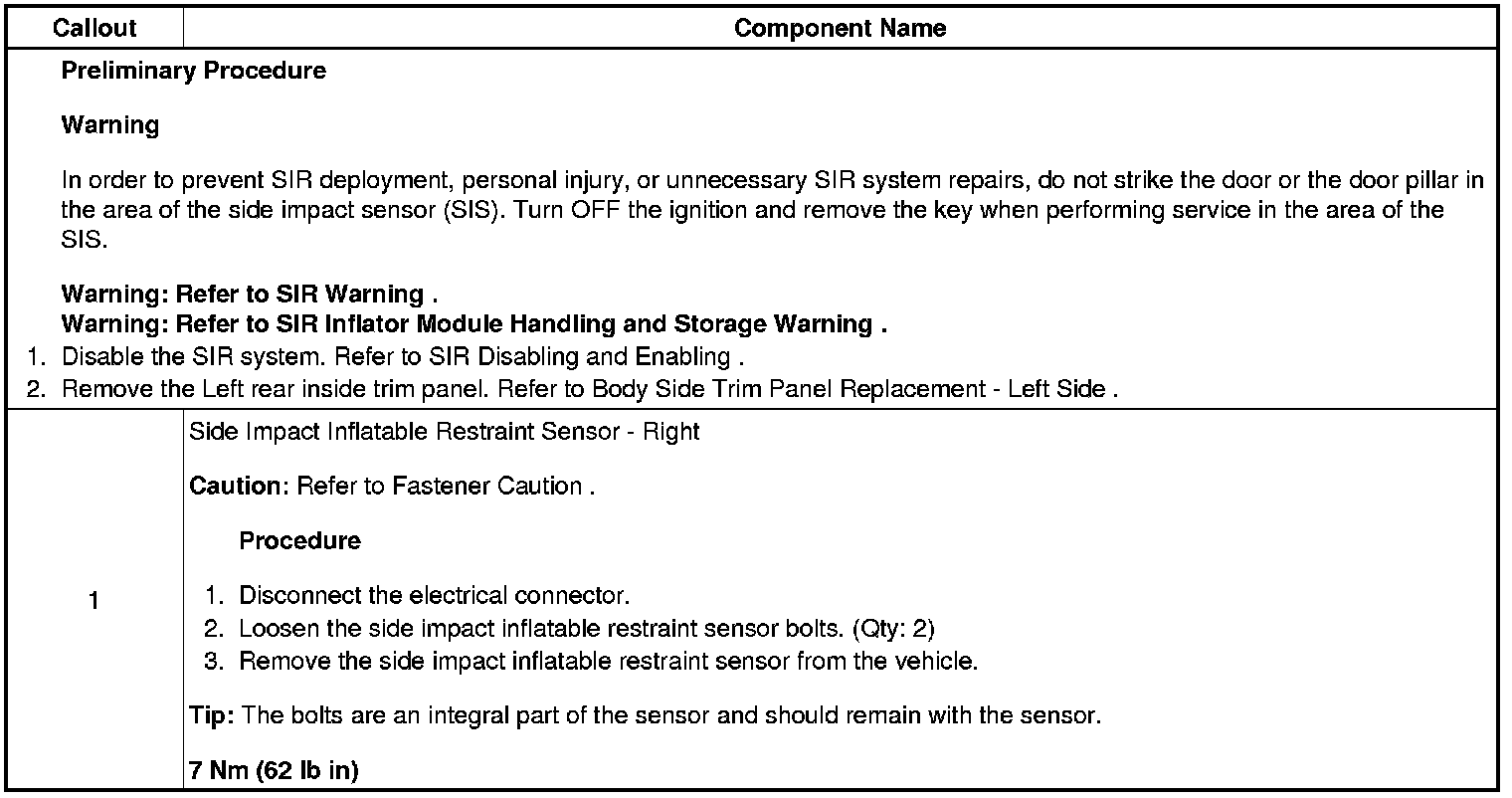 Inflatable Restraint Side Impact Sensor Replacement - Left Side Rear