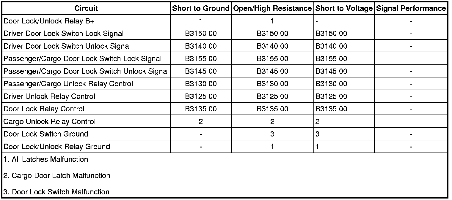 The body control module (BCM), upon receipt of a cargo unlock command from the remote keyless entry (RKE), will switch the CARGO UNLCK relay control circuit to battery positive voltage. This will energize the CARGO UNLCK relay activating the cargo door latch.