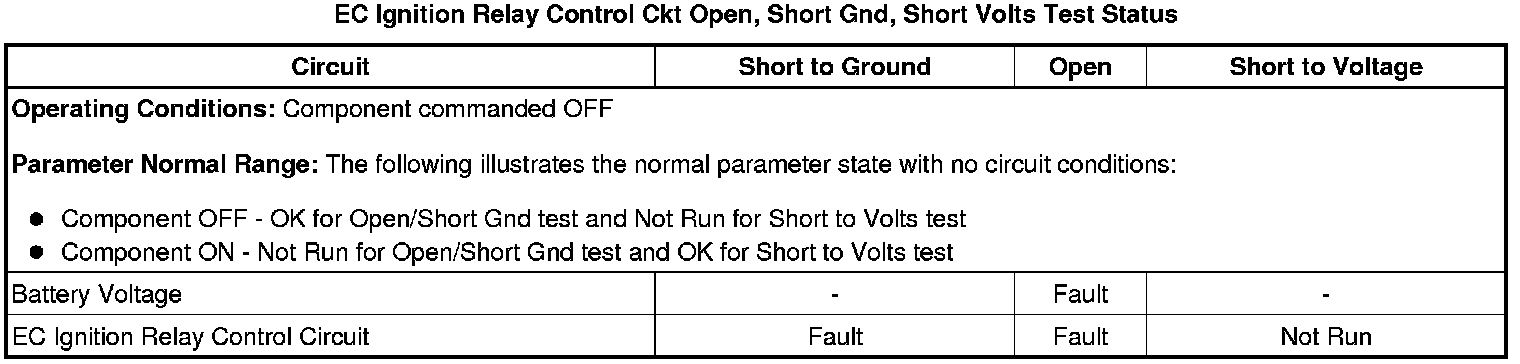 * EC Ignition Relay Control Ckt Short Volts Test Status