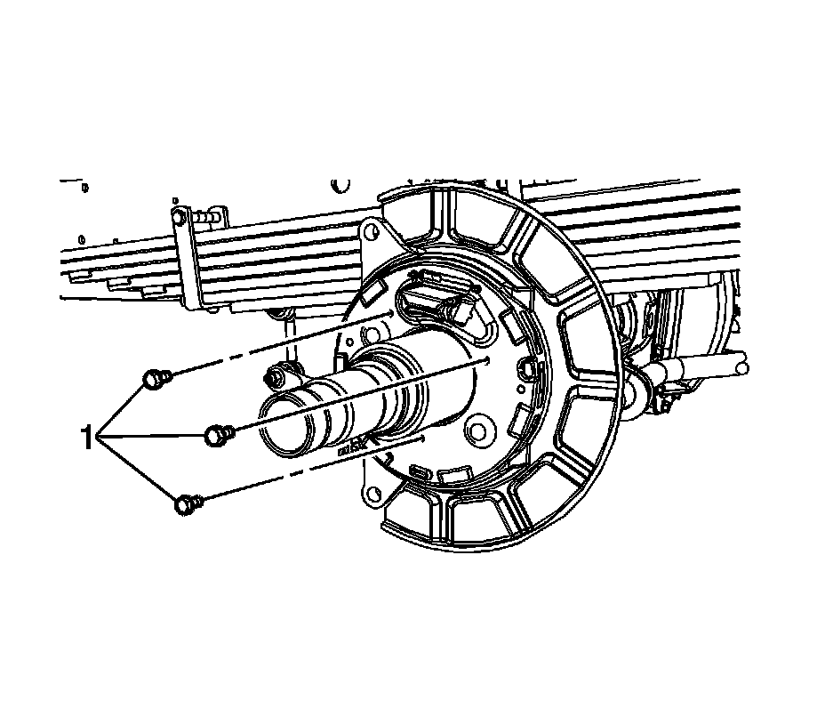 6. Remove the brake shield bolts (1).