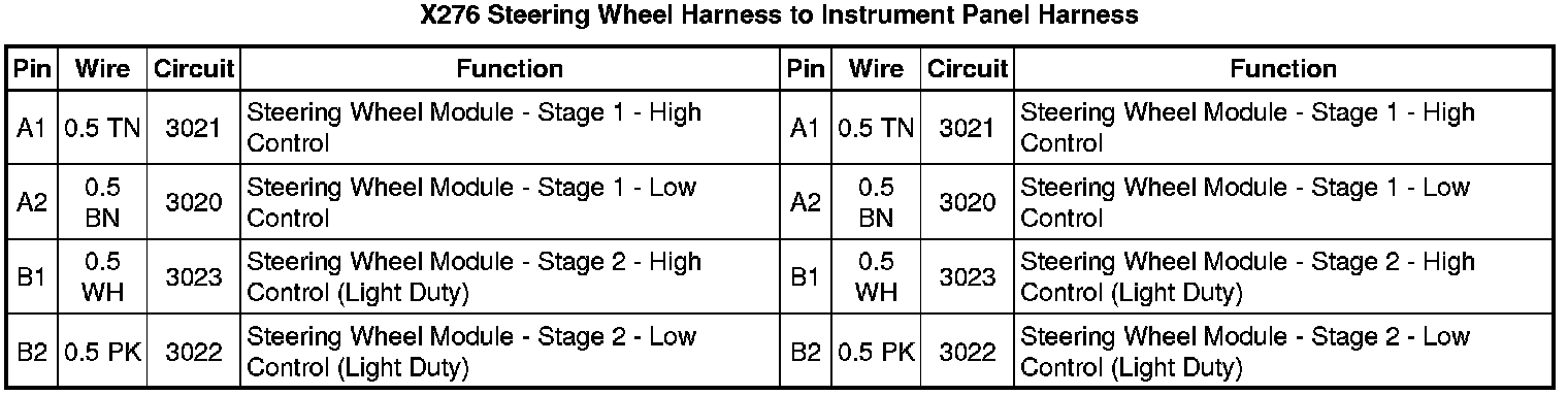 X276 Steering Wheel Harness to Instrument Panel Harness