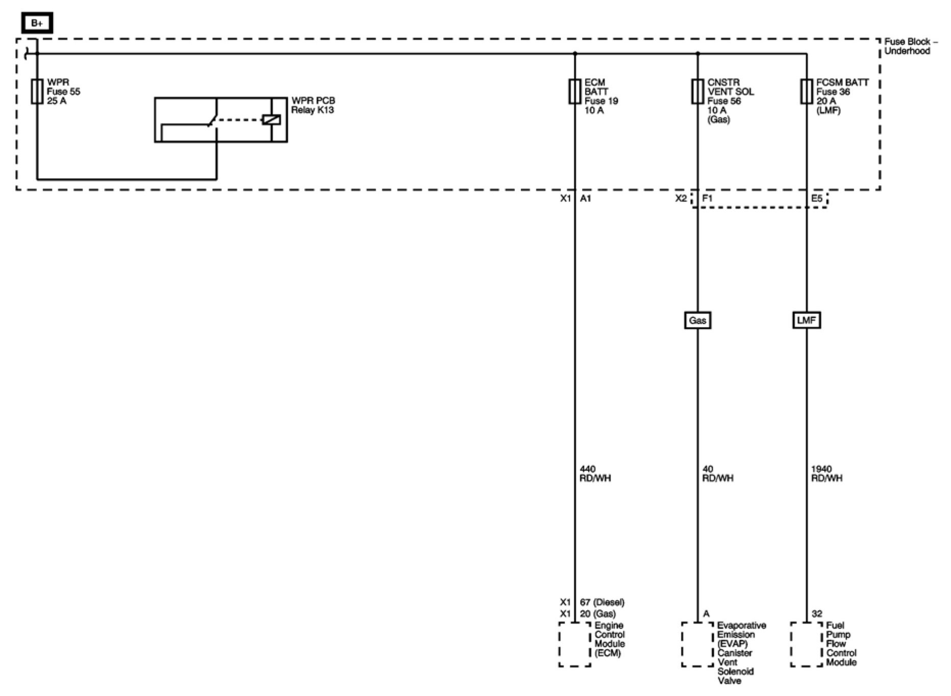 CNSTR VENT SOL, ECM BATT, FCSM BATT, and WPR Fuses