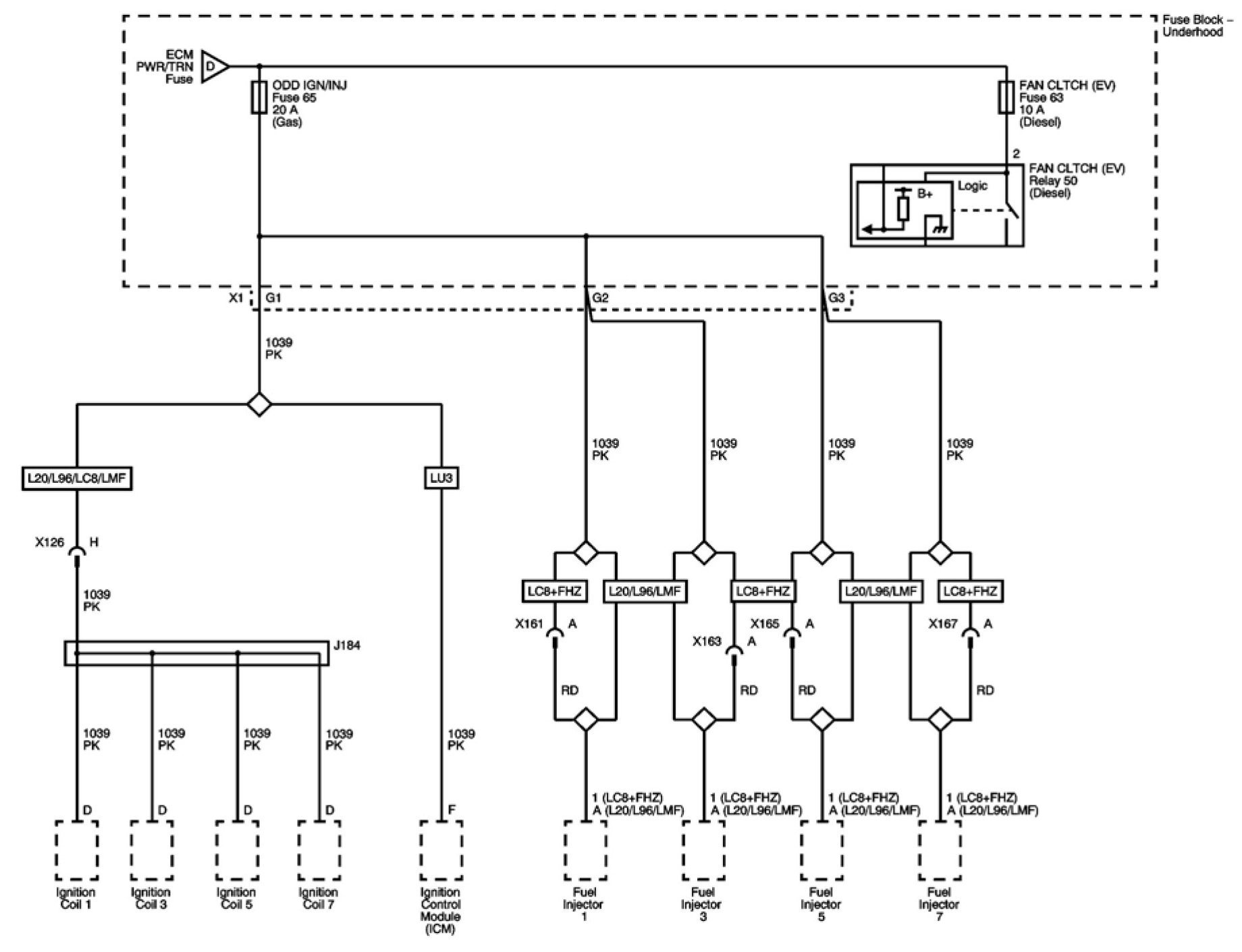 FAN CLTCH (EV) and ODD IGN/INJ Fuses