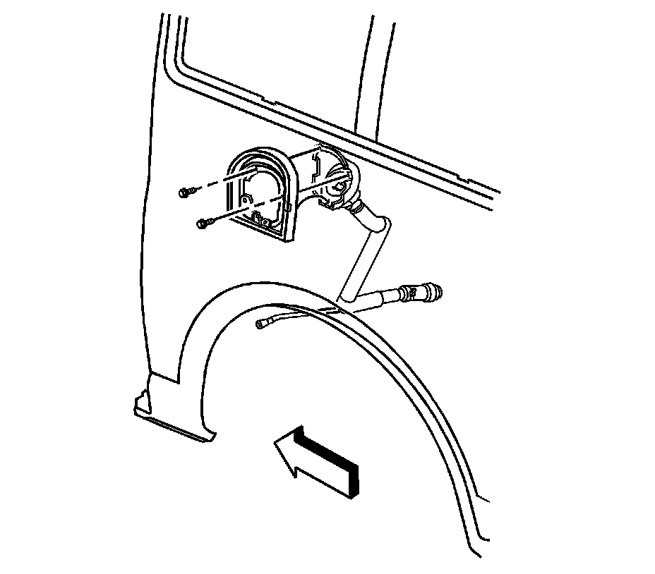 2. Align the fuel fill pipe to the fuel fill pipe housing and tighten the clamp to 2.75 Nm (24 lb in).