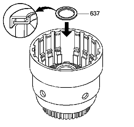 4. Install the input sun gear bearing assembly (637) into the input housing.