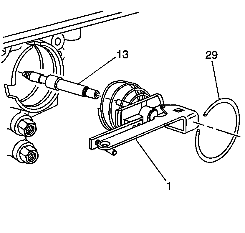 1. Disassemble the 2-4 servo assembly. Remove the apply pin retaining ring (24), the servo apply pin washer (23), the servo apply pin spring (22) and the 2nd apply piston pin (13).