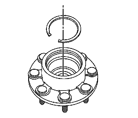Note: Drive the outer bearing cup into the wheel hub until it is just past the retaining ring groove. Do not bottom out the bearing assembly in the bore.