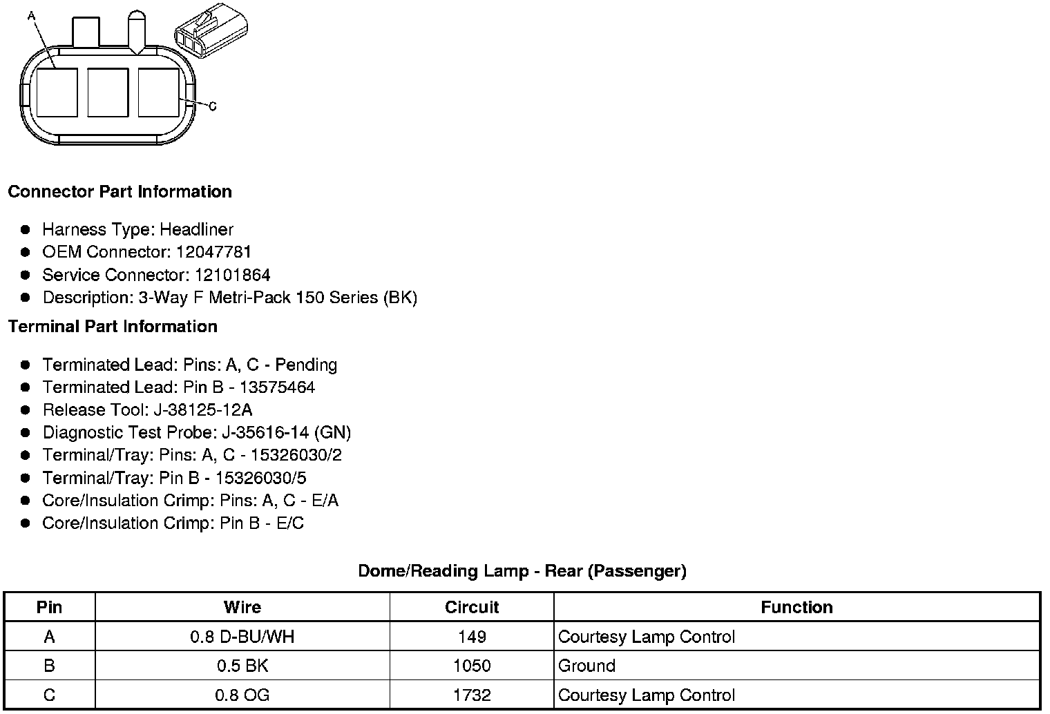Dome/Reading Lamp - Rear (Passenger)