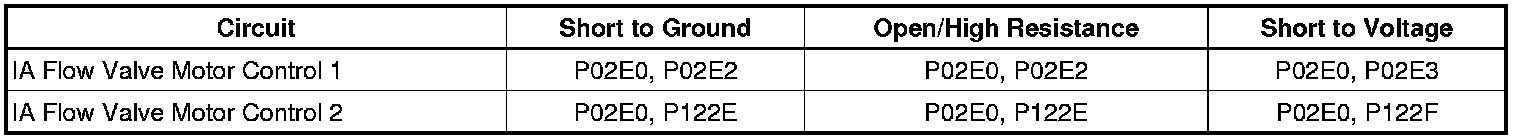 - Intake Air (IA) Flow Valve Control Circuit Shorted