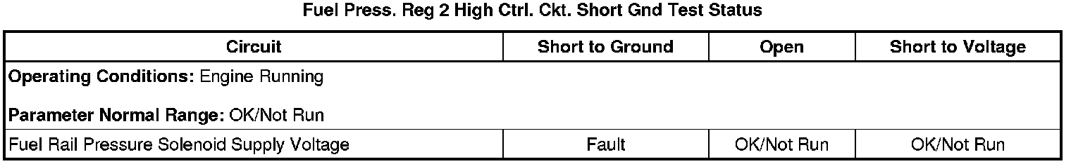* Fuel Press. Reg. 2 Ctrl. Ckt. Short Gnd Test Status